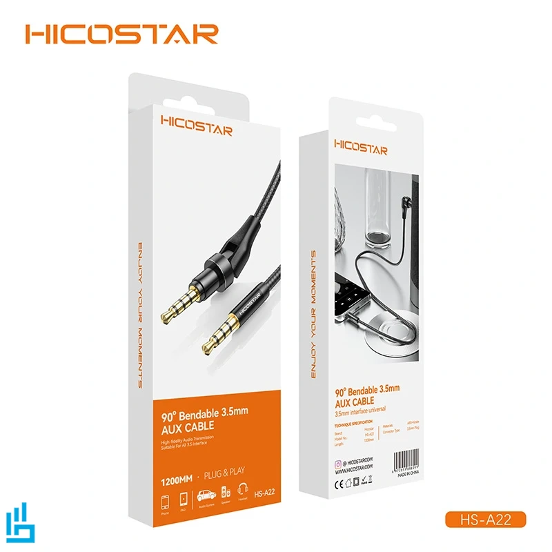 طراحی خلاقانه با سری 90 درجه کابل AUX هایکو استار HICOSTAR HS A22 مشکی طول 1.2 متر