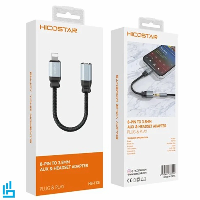 استانداردهای جهانی کابل تبدیل Lightning to AUX هایکو استار HICOSTAR HS T13I طول 12 سانتی متر