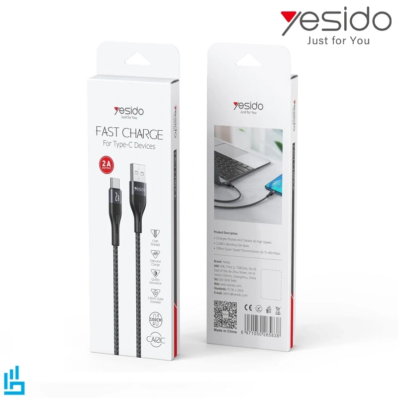 کابل Type-C یسیدو YESIDO CA121 به طول 100 سانتیمتری با روکش کنفی مقاوم ، ضد فرسایش و شکستگی است.هسته سیم از جنس مس هست که باعث کاهش مقاومت و افزایش سرعت شارژ تا 2 آمپر میشود.
