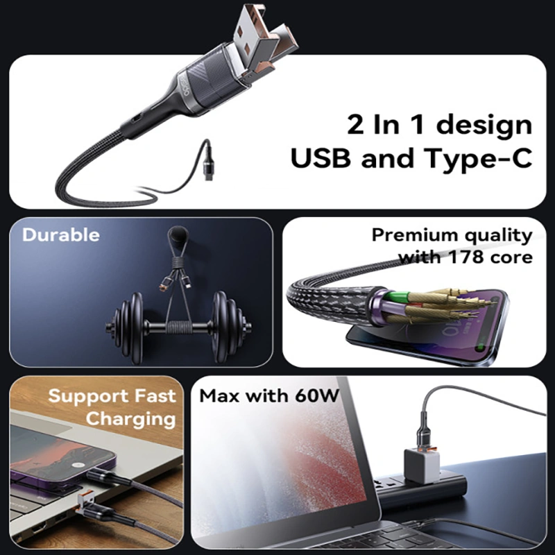 کابل تبدیل 2 کاره YESIDO CA165 به عنوان یک کابل چندمنظوره در دسته لوازم جانبی شارژ و انتقال داده قرار میگیرد. این مدل با طراحی دوکاره، امکان استفاده از رابطهای USB و Type-C را فراهم کرده و برای کاربرانی که با دستگاههای متنوع سروکار دارند، راهکاری انعطافپذیر ارائه میدهد.