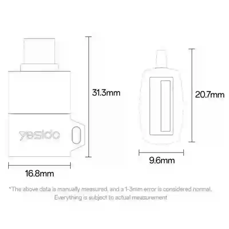 تبدیل Yesido GS31 با بدنه‌ای مقاوم از ترکیب پلاستیک ABS و فلز طراحی شده است تا دوام و استحکام خوبی داشته باشد. بدنه کوچک و سبک آن باعث می‌شود حمل و استفاده روزمره ساده باشد و فضای زیادی اشغال نکند. رنگ مشکی مات و طراحی مینیمال، ظاهری مدرن و مناسب برای استفاده با گوشی و تبلت‌های Type‑C ایجاد کرده است.
