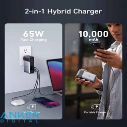 \nشارژر 2 در 1: با یک شارژر دیواری هیبریدی 65 واتی و یک شارژر قابل حمل 10000 میلی آمپر ساعتی از بهترین های هر دو دنیا لذت ببرید. Power for 3: با 2 پورت USB-C و 1 پورت USB-A، می توانید به راحتی حداکثر 3 دستگاه را همزمان شارژ کنید. پشتیبانی شده توسط GaNPrime™: شارژر قابل حمل به پیشرفته ترین سیستم شارژ Anker مجهز به انرژی GaN، طراحی جمع و جور مبتکرانه، PowerIQ™ 3.0 برای کارایی بالاتر و ActiveShield™ 2.0 برای نظارت هوشمند دما مجهز شده است. سازگاری گسترده: با طیف وسیعی از دستگاهها از جمله تلفن، تبلت، لپتاپ و غیره بینقص کار میکند.