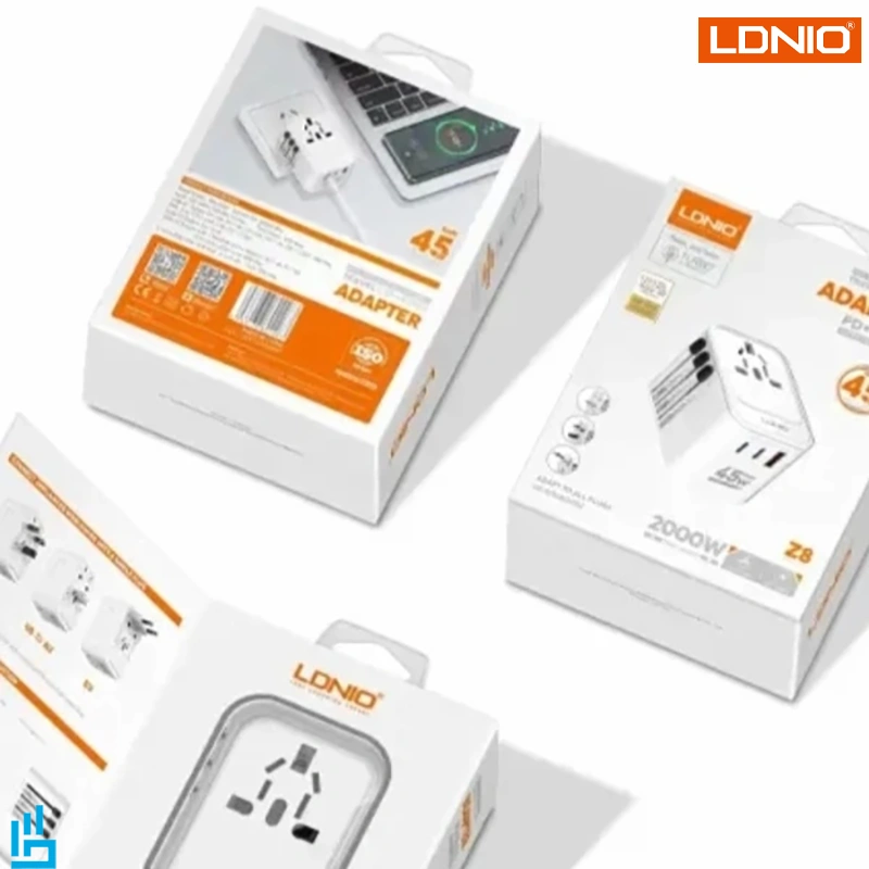 شارژر الدینیو Z8 از طراحی زیبا و مدرنی بهره میبرد. جنس بدنه آن از مواد مقاوم ساخته شده که هم دوام بالایی دارد و هم در برابر گرما مقاوم است. ابعاد کوچک آن، امکان استفاده در فضاهای محدود را فراهم میکند.با وزنی معادل 400 گرم، شارژر Z8 بهراحتی قابل حمل است و میتوانید آن را در کیف خود به همراه داشته باشید.این شارژر مجهز به درگاههای USB Type-C و USB-A است که امکان اتصال انواع کابلها و دستگاهها را فراهم میکند. خروجی تایپسی با توان بالا برای دستگاههای پیشرفته مانند لپتاپها ایدهآل است.تکنولوژیهای شارژ سریع QC 3.0 و PD 3.0 در این مدل، سرعت شارژ را به سطح بالاتری میرسانند و شما میتوانید دستگاههای خود را در کمترین زمان ممکن شارژ کنید.