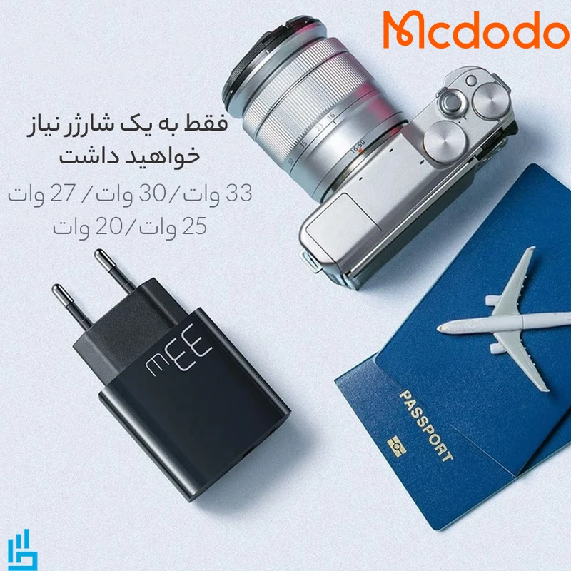 شارژر دیواری مک دودو مدل CH0922 دارای دو پورت مختلف است: یک پورت تایپ سی و یک پورت USB. این پورتها از تکنولوژیهای شارژ سریع (QC) و USB PD پشتیبانی میکنند که میتوانند سرعت شارژ دستگاهها را به صورت قابل توجهی افزایش دهند. این فناوریها برای افرادی که همیشه به سرعت شارژ نیاز دارند، بسیار مفید هستند. این شارژر توان خروجی 33 وات را ارائه میدهد که برای شارژ همزمان دو دستگاه بسیار مناسب است. اگر فقط از پورت تایپ سی استفاده کنید، توان 33 وات را دریافت خواهید کرد و در صورت استفاده از پورت USB، توان 30 وات در اختیار شما قرار میگیرد. همچنین در صورت استفاده همزمان از دو پورت، توان به طور مساوی بین دستگاهها تقسیم میشود. مبدل این شارژر از نوع EU است که با پریزهای ایران سازگار بوده و نیاز به مبدل جداگانه ندارد. این ویژگی باعث میشود که استفاده از شارژر در ایران بدون هیچگونه مشکلی ممکن باشد. شارژر دیواری مک دودو CH0922 دارای ابعاد 82.6x43.5x25.7 میلیمتر و وزن 65 گرم است. این ابعاد کوچک و وزن کم باعث شده است که حمل و نقل آن بسیار آسان باشد و شما به راحتی میتوانید این شارژر را در جیب یا کیف خود جای دهید. این شارژر از جنس PC ساخته شده است که در برابر گرما مقاومت بالایی دارد. همچنین طراحی ارگونومیک آن باعث میشود که علاوه بر کارایی بالا، از لحاظ ظاهری نیز جذاب باشد.