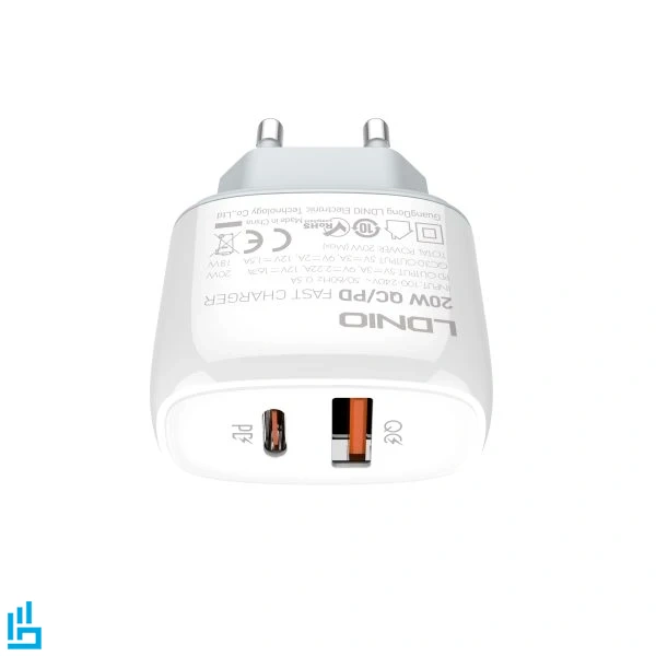 شارژر دیواری 20 وات الدینیو LDNIO Q229 یک شارژر دیواری با توان خروجی 20 وات واقعی است که به دو پورت خروجی مجهز شده؛ یکی USB-A با فناوری Quick Charge 3.0 و دیگری USB-C با فناوری Power Delivery (PD). بدنهی این محصول از پلاستیک مقاوم در برابر حرارت (PC نسوز) ساخته شده و در کنار طراحی فشرده و سبک وزن، آن را به انتخابی ممتاز برای استفاده روزمره، سفر و محل کار تبدیل کرده است.