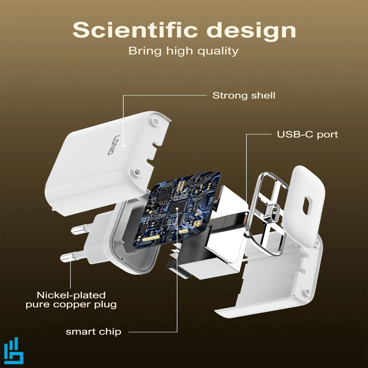 یکی از ویژگی‌هایی که شارژر LDNIO Q1415 را از سایر محصولات مشابه متمایز می‌سازد، طراحی مدرن و لوکس آن است. این شارژر برخلاف اغلب کلگی‌های موجود در بازار، از یک ساختار زیبا، جمع‌وجور و کاملاً حرفه‌ای بهره می‌برد که حس کیفیت و دوام را به کاربر القا می‌کند.