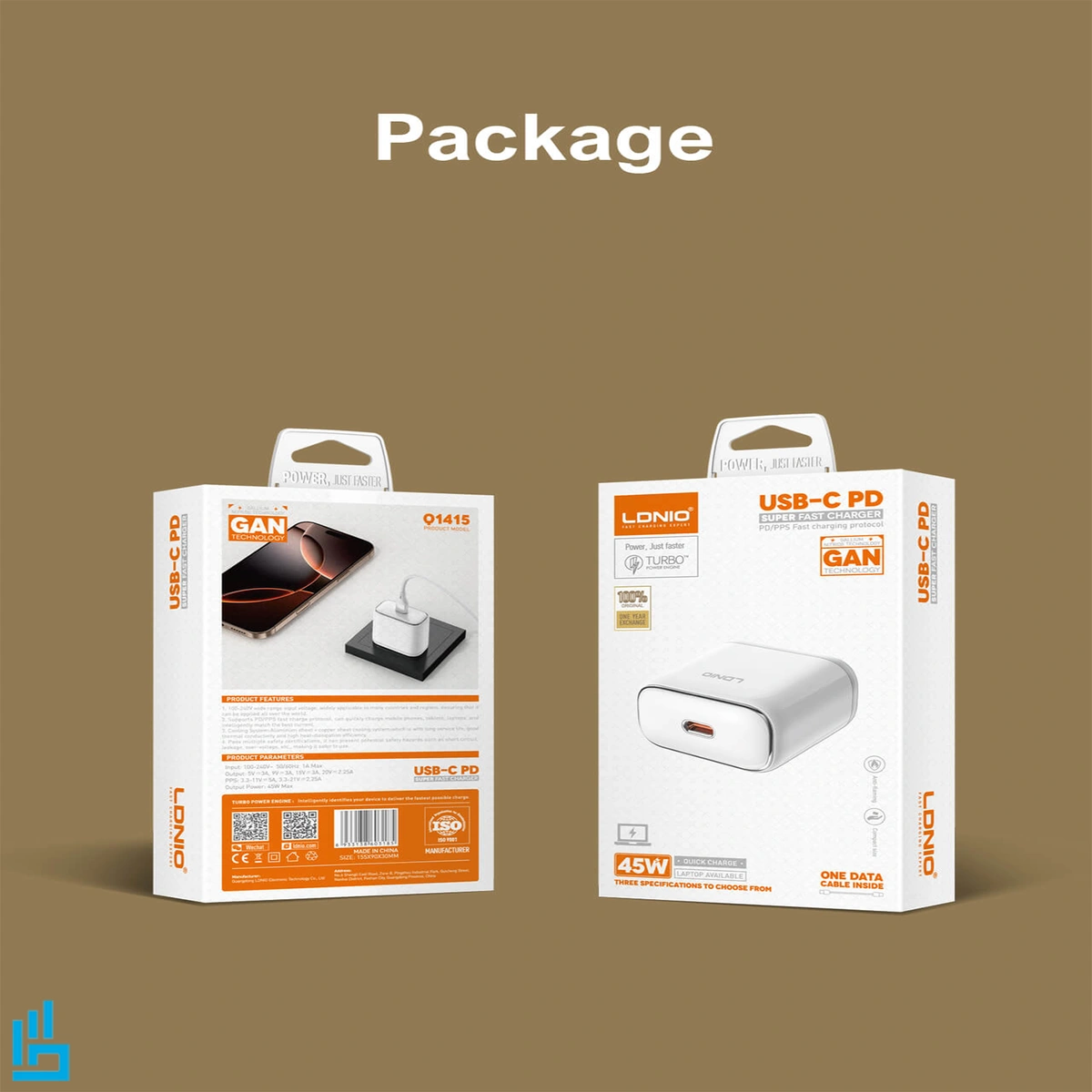 مشخصات فنی دقیق شارژر دیواری 45 وات الدینیو LDNIO Q1415 با کابل C-C