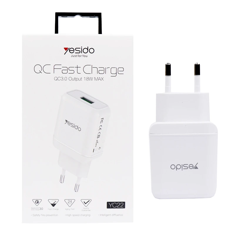 شارژر دیواری یسیدو YC22 یکی از محصولات باکیفیت برند یسیدو است که مخصوص شارژ سریع گوشیها و تبلتها طراحی شده است. این شارژر با توان خروجی 18 وات و فناوری Qualcomm Quick Charge 3.0، سرعت شارژ بالایی دارد و در عین حال محافظت کامل در برابر نوسانات برق ارائه میدهد.