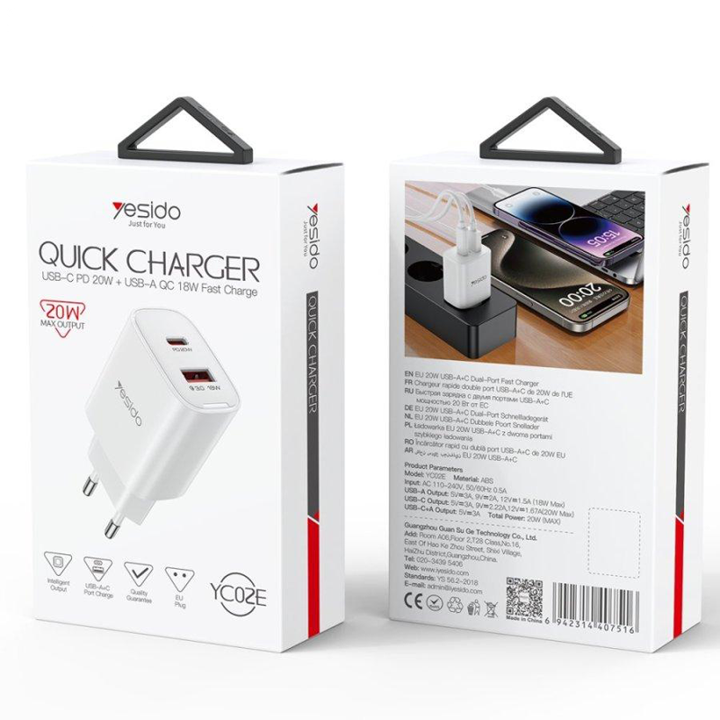 شارژر YC02E یکی از محصولات محبوب برند یسیدو است که با طراحی جمعوجور و بدنه پلاستیک ABS، دوام و مقاومت خوبی دارد. این شارژر دو پورت خروجی دارد: یک پورت Type-C و یک پورت USB-A، که به شما امکان شارژ همزمان دو دستگاه با سرعت بالا را میدهد.