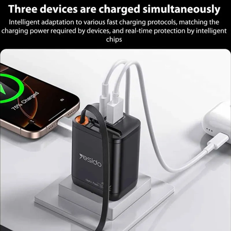 شارژر دیواری Yesido YC99 یک گزینهی حرفهای برای کاربرانی است که به دنبال قدرت بالا و طراحی جمعوجور هستند. این شارژر با توان 40 وات واقعی و پشتیبانی از فناوریهای PD و QC3.0 میتواند انواع دستگاههای هوشمند از جمله گوشی، تبلت و حتی لپتاپهای سبک را با بالاترین سرعت و ایمنی شارژ کند.