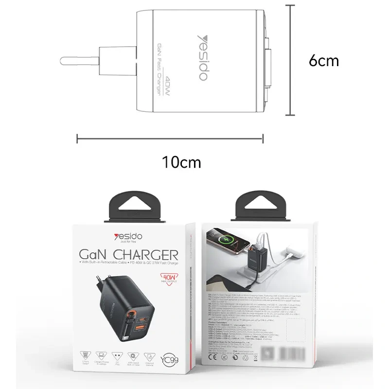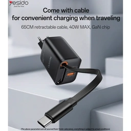 نقد و برررسی شارژر دیواری با کابل جمع شو 40 وات یسیدو Yesido مدل YC99
