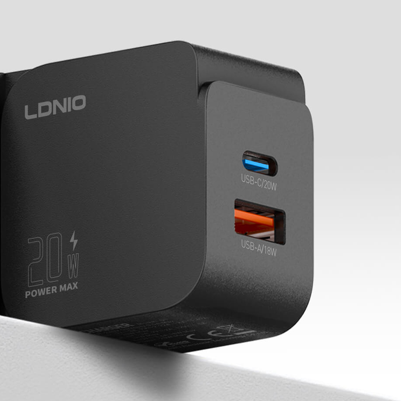 LDNIO Q1 با توان خروجی 20 وات واقعی، عملکرد مناسبی در شارژ سریع گوشیهای هوشمند دارد. پورت USB-C خروجی تا 20W و پورت USB-A خروجی تا 18W را ارائه میدهد. این شارژر برای آیفون، آیپد، گوشیهای اندرویدی و حتی برخی مدلهای مکبوک که توان پایینتری نیاز دارند، کاملاً مناسب است.