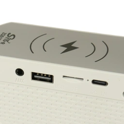 این باتری داخلی امکان استفاده بدون اتصال مستقیم به برق را فراهم میکند. کاربر میتواند چراغ و اسپیکر را حتی در فضای باز یا مکانهایی که دسترسی به برق نیست، بهراحتی روشن کند.