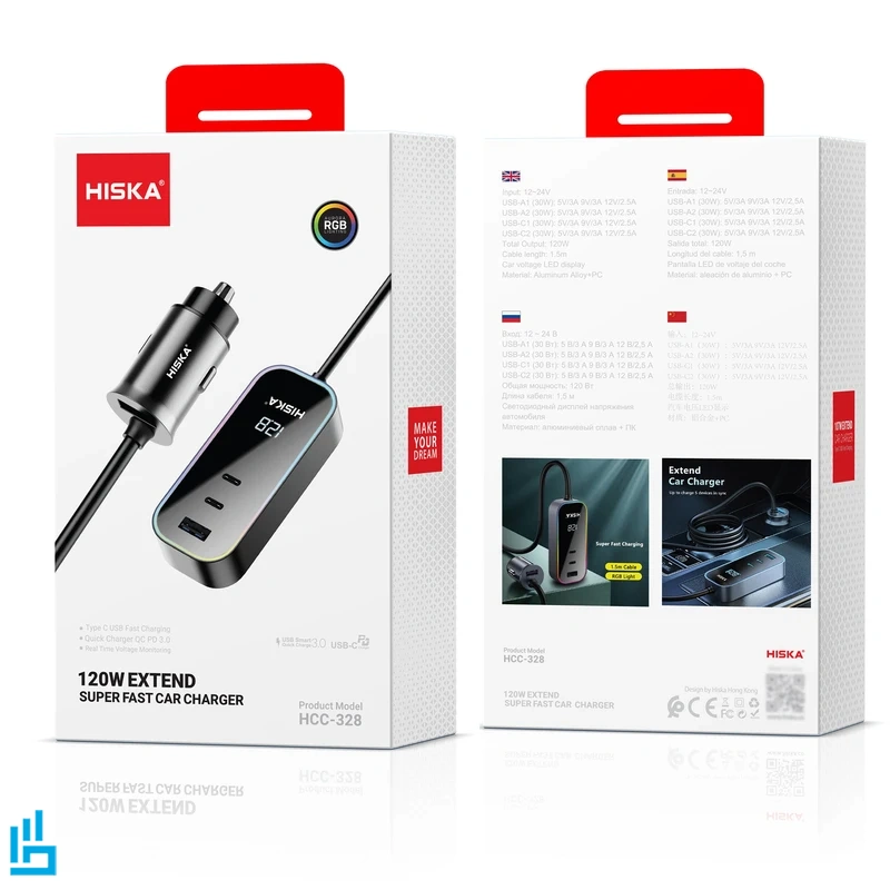 توان خروجی فوق العاده 120 وات شارژر فندکی فست شارژ هیسکا HISKA HCC328
