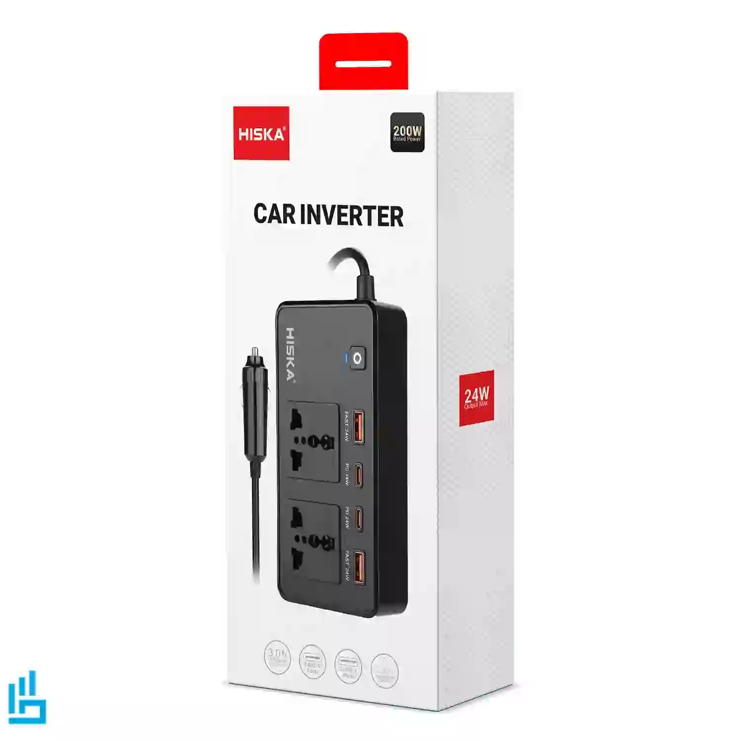 توان خروجی چندراهی برق و اینورتر خودرو هیسکا HISKA CH5519: توان 200 واتی خروجی 220 ولت