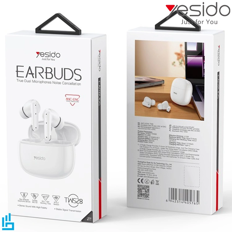 هدست بلوتوثی دوتایی یسیدو YESIDO TWS28 یکی از گزینههای ایدهآل برای عاشقان موسیقی و مکالمه است که به لطف طراحی مدرن و وزن سبک، راحتی و کیفیت را همزمان ارائه میدهد. این ایرپاد از جنس پلاستیک باکیفیت PC + ABS ساخته شده که دوام بالایی را تضمین میکند. با بهرهگیری از بلوتوث نسخه 5.3، اتصال سریع و پایداری را در محدوده 10 متر ارائه میدهد. یکی از ویژگیهای برجسته این مدل، قابلیت نویز کنسلینگ است که نویزهای مزاحم محیط را حذف کرده و تجربهای شفاف از مکالمه و گوش دادن به موسیقی را فراهم میکند.
