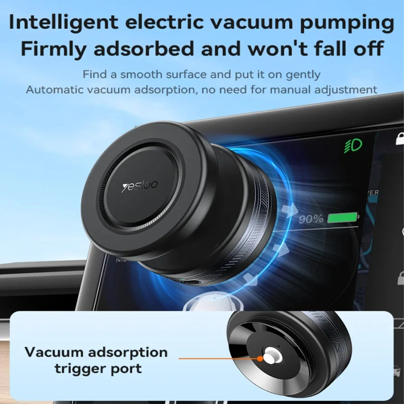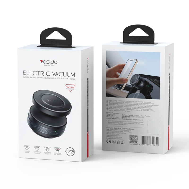 Yesido C224 به سیستم وکیوم برقی هوشمند مجهز شده که با مکش قوی، بهراحتی روی داشبورد، شیشه یا هر سطح صاف دیگری نصب میشود. این مکش بدون نیاز به چسب یا ابزار خاصی انجام میشود و در صورت جدا کردن، اثری روی سطح باقی نمیگذارد. عملکرد پایدار این سیستم، خیال کاربر را از بابت جدا شدن هولدر راحت میکند.