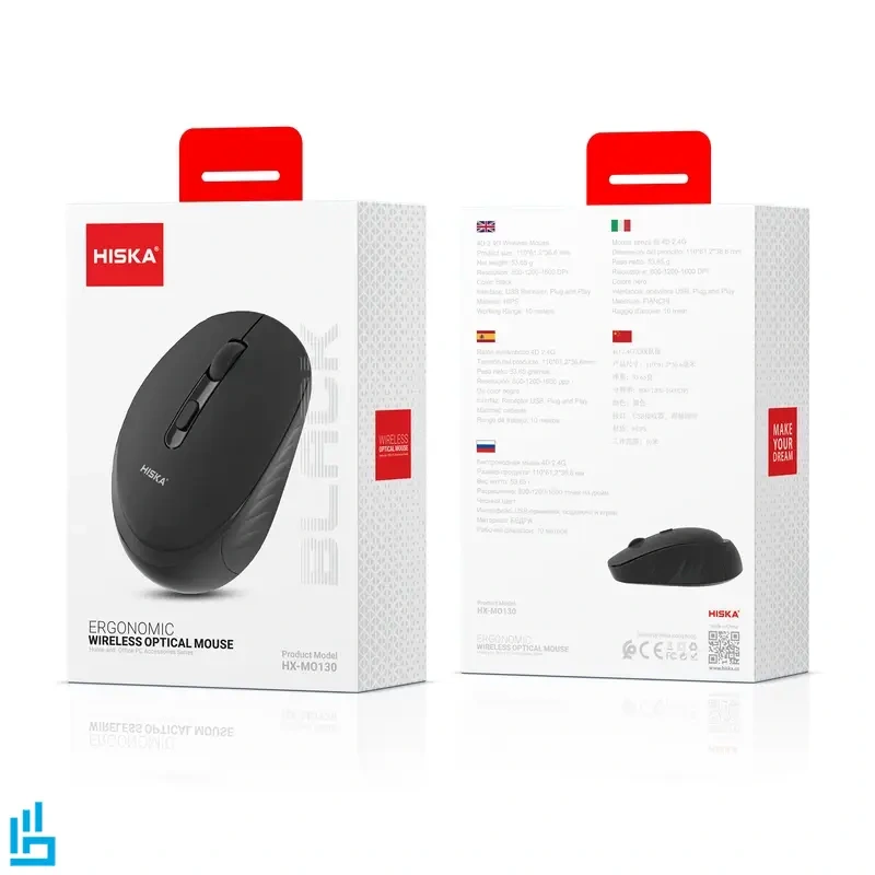 ماوس وایرلس Hiska MO130 با ابعاد 110 در 61 در 36.6 میلیمتر و وزن 53 گرم، از طراحی ارگونومیک و جمعوجور برخوردار است که مناسب استفاده طولانی مدت بدون احساس خستگی است. این ماوس دارای حسگر اپتیکال با دقت 1600 DPI است که برای کاربردهای معمولی و حتی کارهای دقیقتر مانند طراحیهای سبک نیز مناسب است. نرخ نمونهگیری یا دقت حسگر به گونهای تنظیم شده که سرعت و دقت حرکت ماوس را بهینه میکند. از نظر اتصال، MO130 از فرکانس بیسیم 2.4 گیگاهرتز بهره میبرد و با دانگل USB به دستگاه متصل میشود. محدوده عملکرد بیسیم این ماوس تا 10 متر است که آزادی عمل بسیار خوبی را فراهم میکند. همچنین، این مدل از سیستمهای عامل مختلفی مانند ویندوز XP تا 11 و مک OS نسخه 10 به بعد پشتیبانی کامل میکند.