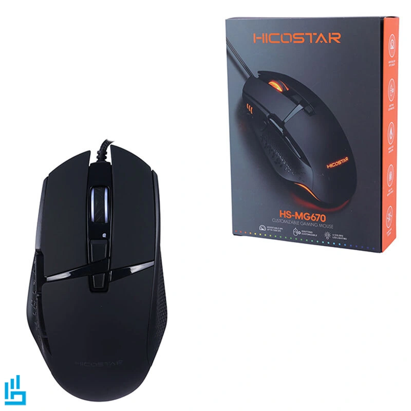 نورپردازی LED زیبا و قابل تنظیم موس گیمینگ سیمی هایکو استار HICOSTAR HS MG670