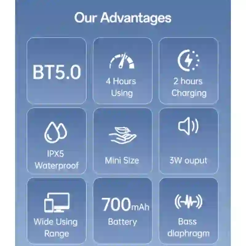 اسپیکر از بلوتوث نسخه ۵٫۰ پشتیبانی میکند که اتصال پایدار و مصرف انرژی پایینتر را فراهم میآورد. برد بلوتوث معمولاً تا حدود ۱۰ متر است.