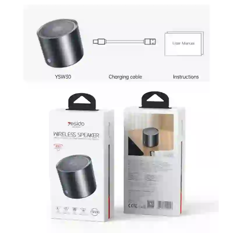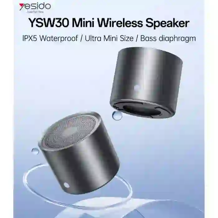اسپیکر Yesido YSW30 یک اسپیکر جمعوجور و قابل حمل است که با توان ۳ وات، مقاومت در برابر آب (استاندارد IPX5) و باتری ۷۰۰ میلیآمپرساعت طراحی شده است تا تجربهی شنیداری قابل قبولی در محیطهای داخلی و نیمهباز فراهم کند. پوستهی فلزی از جنس آلیاژ روی (zinc alloy) به آن ظاهری مدرن و مقاوم داده است.