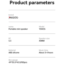 مشخصات فنی اسپیکر بلوتوثی یسیدو مدل YSW35