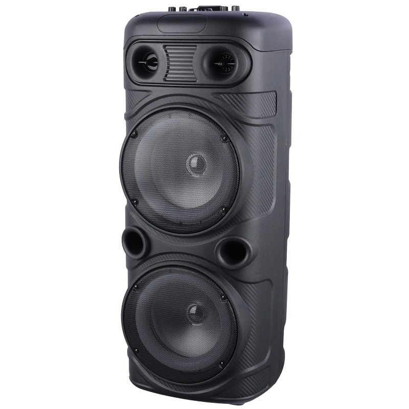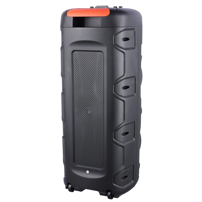 طراحی چمدانی با دسته و دو چرخ باعث میشود اسپیکر بهسادگی حمل شود. چه برای سفر، چه برای جشنهای خانوادگی یا استفاده در محیط باز، کاربر میتواند بدون دغدغه وزن، آن را جابهجا کند.