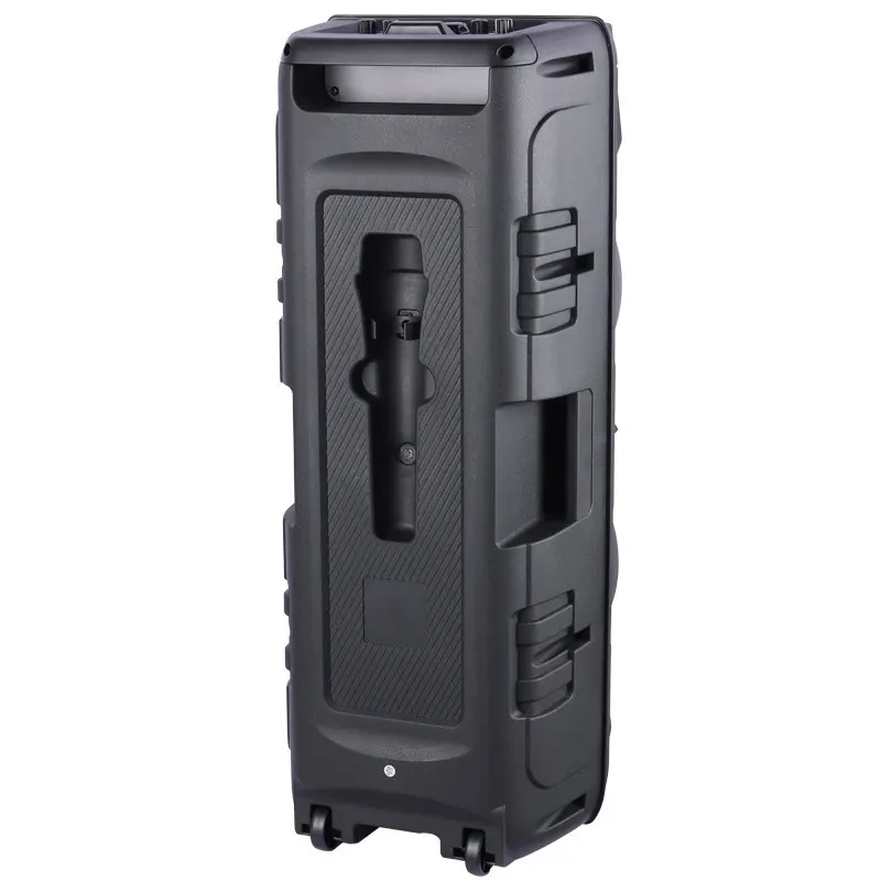 بدنه اسپیکر از ترکیب پلاستیک و فلز مقاوم ساخته شده است. این انتخاب موجب افزایش دوام دستگاه و مقاومت آن در برابر ضربه می‌شود. طراحی چمدانی به همراه دسته حمل و دو عدد چرخ، جا‌به‌جایی دستگاه را بسیار آسان کرده است. ابعاد 25×22×73 سانتی‌متر و وزن 5 کیلوگرم نیز نشان‌دهنده تعادل مناسب بین قدرت و قابلیت حمل است.