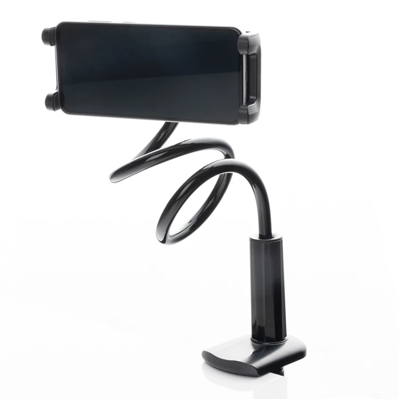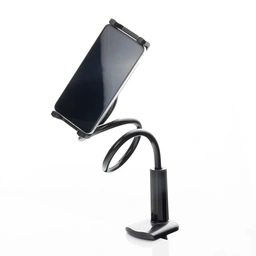 کاربری هولدر HK-2016 بسیار ساده است. کافی است پایه را روی لبه میز قرار دهید و پیچ انتهای آن را ببندید تا هولدر محکم شود. سپس دستگاه خود را در هولدر قرار دهید و با چرخش و خم کردن بازوی خرطومی، زاویه دلخواه خود را تنظیم کنید. این روند سریع و بدون نیاز به ابزار خاص انجام میشود.