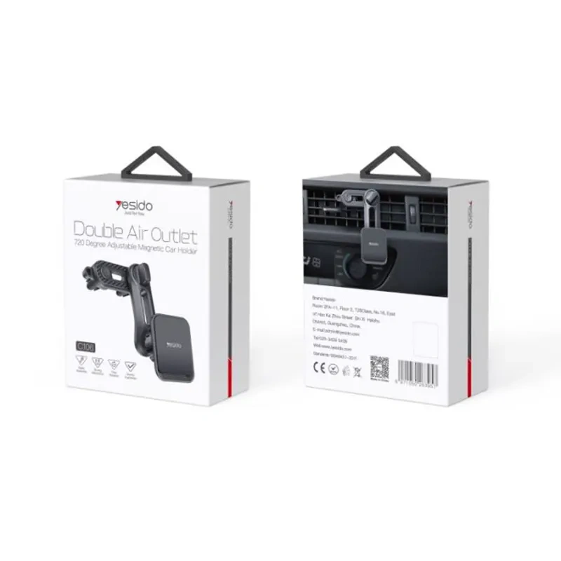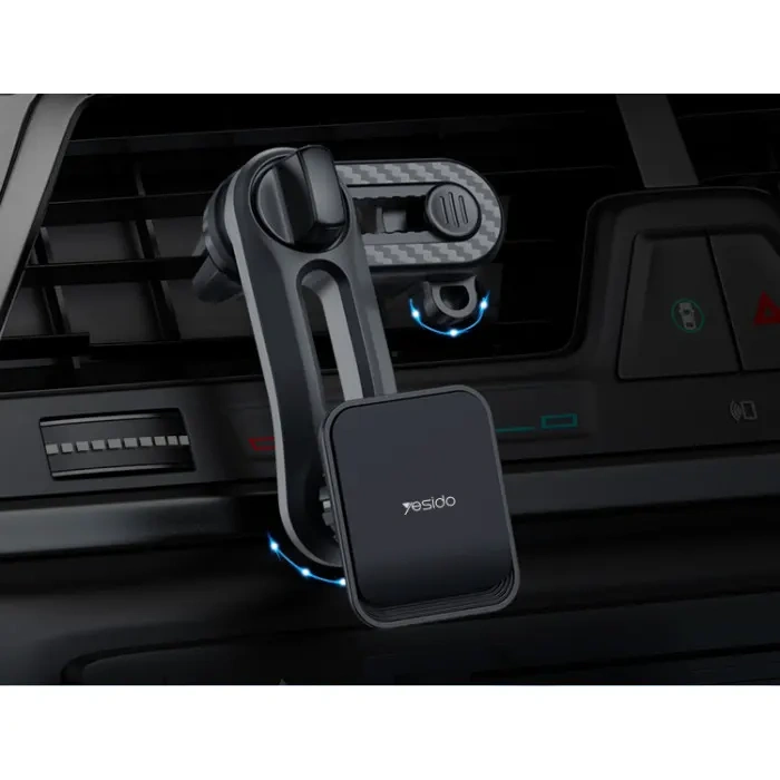 هولدر Yesido C106 با بدنهای ترکیبی از آلیاژ آلومینیوم و پلاستیک مقاوم ABS طراحی شده است تا علاوه بر ظاهری شیک و مدرن، دوام و مقاومت کافی در استفاده روزمره در خودرو داشته باشد. بخش تماس با گوشی و گیرهها دارای پوشش سیلیکونی نرم هستند که علاوه بر جلوگیری از خط و خش روی گوشی، از آسیب به پرههای دریچه کولر نیز محافظت میکند. وزن سبک (~۷۰ گرم) و ابعاد جمعوجور آن باعث میشود فضای بسیار کمی اشغال کند و تقریبا در دید راننده قابل مشاهده نباشد، بنابراین طراحی مینیمال و کاربردی را ارائه میدهد.