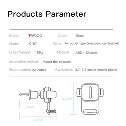 طراحی و کیفیت ساخت هولدر موبایل دریچهکولری گیرهای Yesido C167