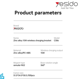 هولدر شارژ وایرلس یسیدو مدل C306 با طراحی مدرن و ویژگیهای منحصر به فرد خود، گزینهای عالی برای افرادی است که به دنبال یک شارژر بیسیم با امکانات بیشتر هستند. این هولدر بهطور خاص برای استفاده با گوشیهای موبایل از سایز 4.7 تا 6.8 اینچ طراحی شده است. توان خروجی این هولدر 15 وات است که باعث شارژ سریعتر گوشیهای موبایل میشود. جنس بدنه این هولدر از ترکیب پلاستیک PC و ABS ساخته شده که هر دو مواد مقاوم و با دوام هستند. این ترکیب باعث میشود تا هولدر در برابر ضربات و فشارهای معمولی مقاوم باشد و طول عمر بالایی داشته باشد. هولدر شارژ وایرلس یسیدو C306 قادر است گوشیهای موبایل را با سرعت 15 وات شارژ کند. این ویژگی بهویژه برای کسانی که به دنبال شارژ سریع هستند، بسیار مناسب است. این سرعت شارژ مناسب برای گوشیهایی است که از فناوری شارژ سریع پشتیبانی میکنند. هولدر یسیدو C306 با اکثر گوشیهای موبایل از سایز 4.7 تا 6.8 اینچ سازگاری دارد. این ویژگی آن را به یک انتخاب عالی برای کاربران مختلف تبدیل میکند، زیرا بسیاری از گوشیهای رایج در این اندازهها قرار دارند.