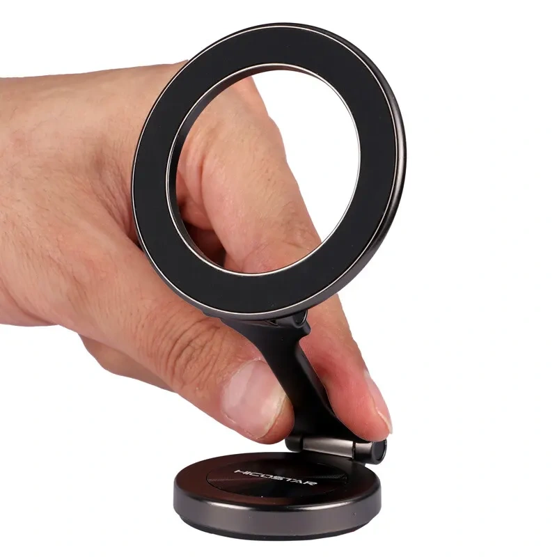 با ابعاد تقریبی 6 در 6 سانتی‌متر، فضای زیادی اشغال نمی‌کند و نصب آن بسیار ساده است—کافی‌ست پایه را روی سطح صاف قرار دهی و گوشی را روی حلقه فلزی بچسبانی، آماده استفاده است.