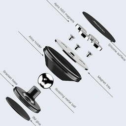 این هولدر با استفاده از مگنتهای قوی، گوشی شما را محکم نگه میدارد. داخل بستهبندی دو پد فلزی دایرهای و مستطیلی قرار دارد که پشت گوشی متصل میشوند تا نگهداری آهنربایی بدون مشکل انجام شود.