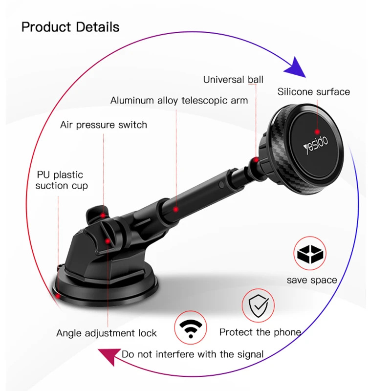 طراحی و ساختار هولدر مگنتی داشبوردی یسیدو مدل Yesido C67