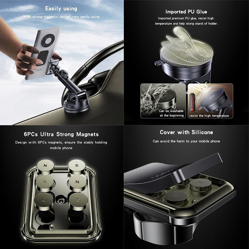 پدهای فلزی به اتصال بهتر گوشی به هولدر کمک میکنند و استاندارد ایمنی، اطمینان از عملکرد صحیح و ایمن در حین استفاده را تضمین میکند.