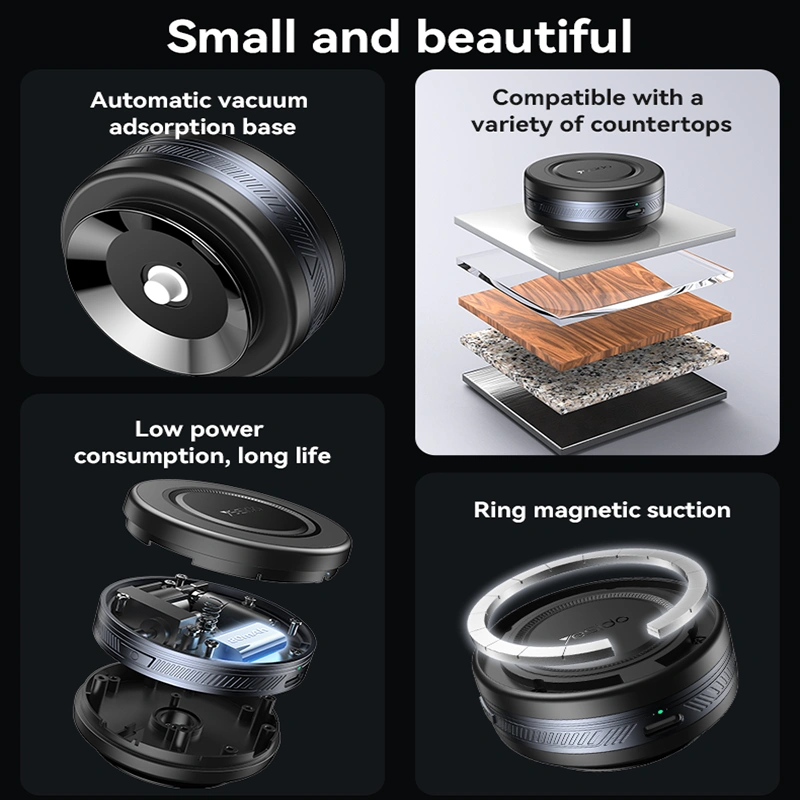 دارای سینی جهت نصب بر روی محل های مختلف -دارای کابل تایپ سی 90 سانتی متری - حلقه فلزی برای گوشی های فاقد مگ سیف