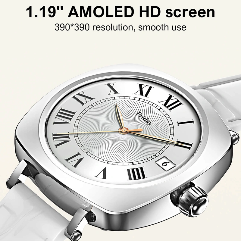 ساعت هوشمند الدینیو SW03 با طراحی مدرن و بدنهای از جنس آلیاژ روی، انتخابی مناسب برای خانمها و آقایان است. اندازه 38.6 میلیمتری و ضخامت 10.9 میلیمتر باعث شده ساعت روی دست احساس سبکی و راحتی داشته باشد. صفحه نمایش 1.19 اینچی AMOLED با وضوح 390×390 پیکسل، روشنایی بالا و رنگهای شفاف را ارائه میدهد. این نمایشگر لمسی تمام صفحه به کاربر امکان تعامل سریع و روان با منوها و قابلیتها را میدهد.