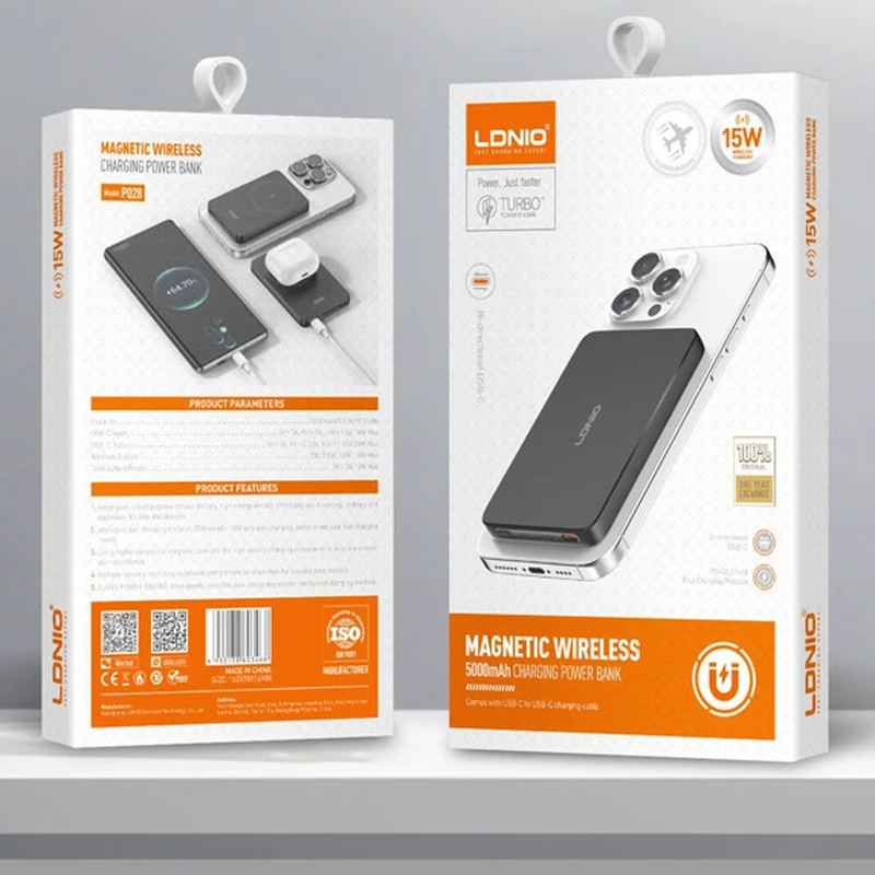 LDNIO PQ28 یک پاوربانک کوچک، سبک و مدرن است که با شارژ بیسیم مگنتی ۱۵ وات و پورت Type-C با توان ۲۰ وات، نیاز کاربران دستگاههای مدرن را به خوبی پاسخ میدهد. ایمنی بالا، مدیریت هوشمند انرژی و طراحی جذاب، این محصول را به گزینهای مناسب برای استفاده روزمره و سفرهای کوتاه تبدیل کرده است.