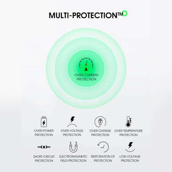 امنیت یکی از نکات برجسته PQ28 است. این پاوربانک مجهز به سیستمهای محافظتی در برابر جریان و ولتاژ بالا، شارژ بیش از حد، اتصال کوتاه و افزایش دمای بیش از حد است. همچنین چیپست داخلی به طور هوشمند جریان خروجی را با توجه به نوع دستگاه تنظیم میکند تا از آسیب به باتری جلوگیری شود و طول عمر آن افزایش یابد.