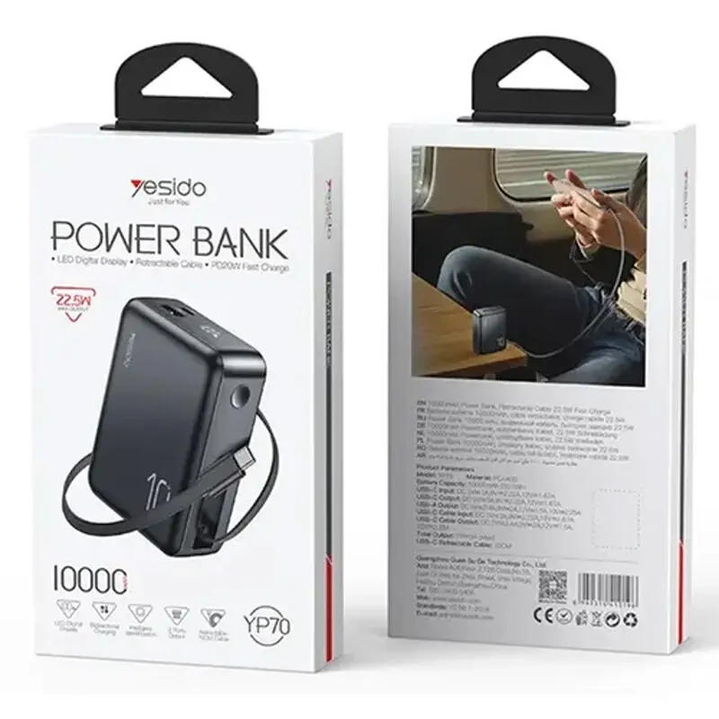 Yesido YP70 پاوربانکی است که بین قیمت اقتصادی، طراحی جمع‌وجور و قابلیت شارژ سریع تعادل ایجاد کرده است. اگر به دنبال پاوربانکی سبک، ایمن و باکیفیت برای استفاده روزانه یا سفر هستید، YP70 انتخابی مطمئن است.