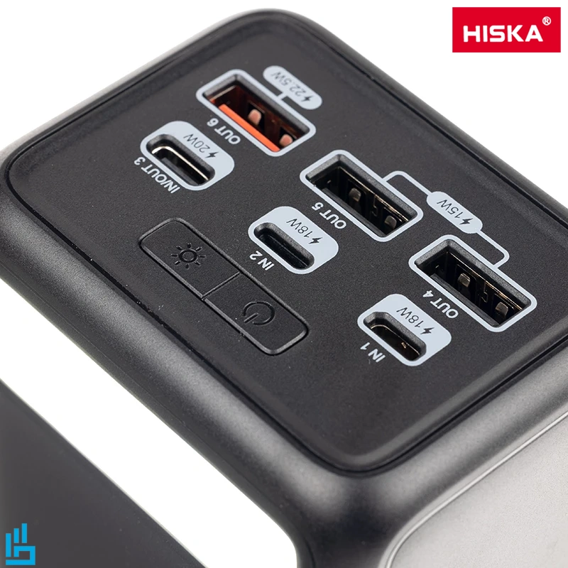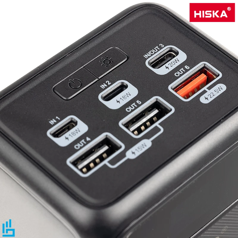 پاوربانک هیسکا HP-510PD دارای چندین پورت ورودی و خروجی است که امکان شارژ همزمان چندین دستگاه را فراهم میکند. این پاوربانک دارای چهار خروجی است که سه تای آنها USB و یکی Type-C است. همچنین ورودی آن نیز Type-C با شدت جریانهای مختلف است. باتری این پاوربانک از نوع لیتیوم پلیمر است که ظرفیت بالایی دارد.