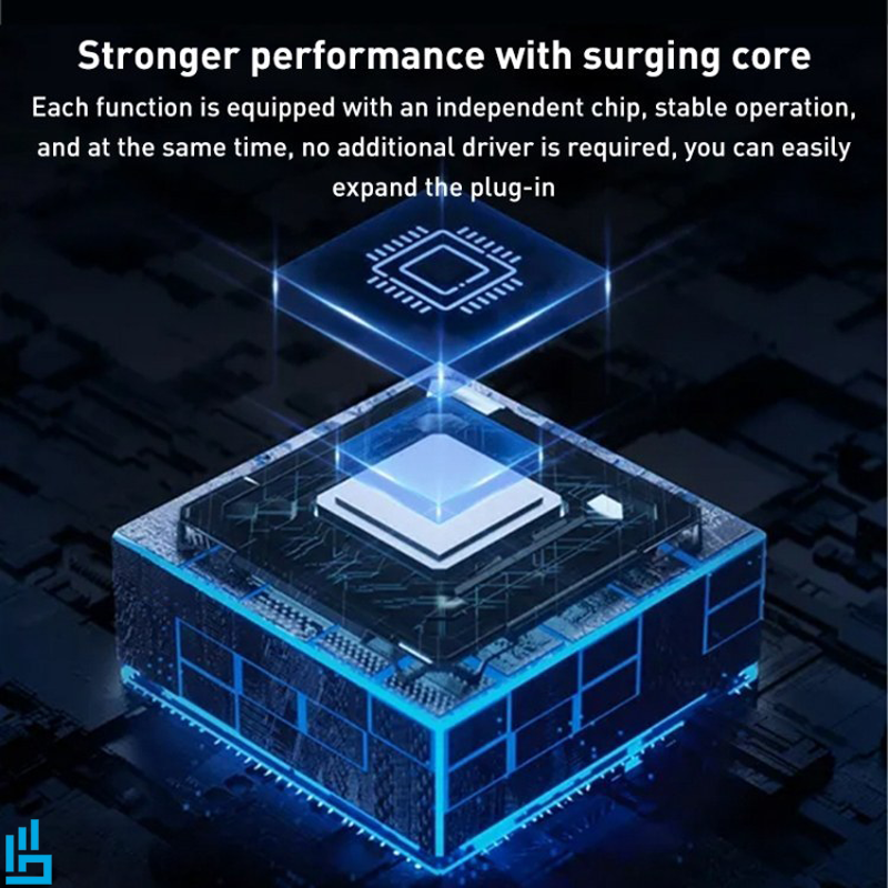 این هاب از رابط ورودی تایپ-C بهره میبرد که سرعت انتقال دادهها را به شدت افزایش میدهد. سرعت انتقال USB 2.0 برابر با 480 مگابیت در ثانیه و سرعت انتقال USB 3.0 برابر با 5 گیگابیت در ثانیه است. این به این معناست که شما میتوانید فایلها و دادههای خود را با سرعت بالا انتقال دهید بدون اینکه نگران کندی یا تأخیر باشید. علاوه بر این، پورت شارژ سریع PD در این هاب وجود دارد که از توان شارژ 100 وات (5V-20V) پشتیبانی میکند، بنابراین به راحتی میتوانید دستگاههای خود را در کمترین زمان شارژ کنید.