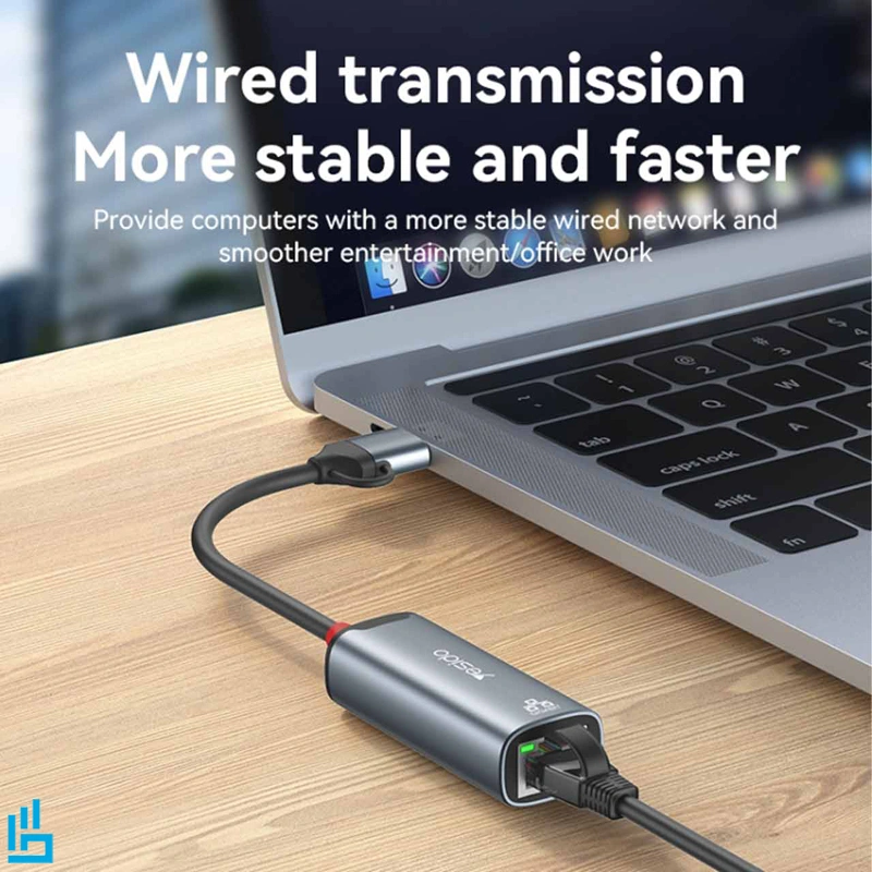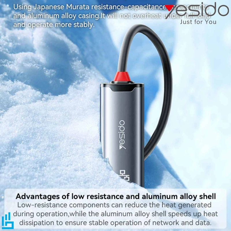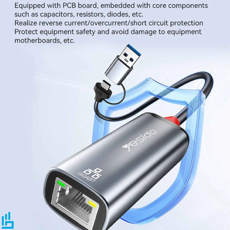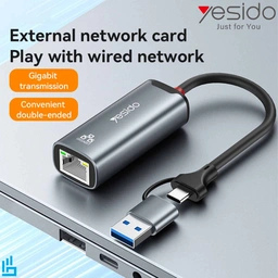 تبدیل Yesido HB26 یک محصول با طراحی کاربرپسند است که امکان اتصال شبکه از طریق درگاه LAN را به انواع دستگاهها با پورتهای USB 3.0 و Type-C فراهم میکند. این محصول با طول کابل 20 سانتیمتری و روکش پلاستیکی ABS مقاوم، تجربهای راحت و ایمن از استفاده را ارائه میدهد. روکش کابل به گونهای طراحی شده که در برابر کشش، خمیدگی و پارگی مقاوم است و عمر طولانیتری به آن میدهد. بدنه این تبدیل از فلز مقاوم ساخته شده است که در برابر ضربه و فشار احتمالی مقاوم بوده و میتواند شرایط مختلف محیطی را به خوبی تحمل کند.