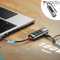 اگر به دنبال یک هاب سریع و کارآمد هستید، YESIDO HB20 شما را ناامید نخواهد کرد. این هاب از پورت USB 3.0 با سرعت انتقال اطلاعات تا 5 گیگابیت بر ثانیه پشتیبانی میکند که برای انتقال فایلهای حجیم فوقالعاده ایدهآل است. همچنین، پورتهای USB 2.0 سرعتی معادل 480 مگابیت بر ثانیه ارائه میدهند که برای اتصال دستگاههایی مانند کیبورد و موس کاملاً مناسب است. یکی از ویژگیهای جذاب این محصول، قابلیت فست شارژ تا توان 100 وات است که به شما اجازه میدهد دستگاههای خود را با سرعت بالا شارژ کنید. علاوه بر این، امکان استفاده چهار پورت USB به صورت همزمان، آن را به گزینهای ایدهآل برای افرادی که نیاز به چندین اتصال همزمان دارند، تبدیل کرده است.