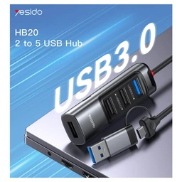 هاب یسیدو مدل HB20 یک انتخاب عالی برای کاربرانی است که به تعداد بیشتری پورت USB و تایپسی نیاز دارند. این هاب دارای پنج پورت شامل سه عدد USB 2.0، یک عدد USB 3.0 و یک پورت تایپسی است که به شما امکان اتصال همزمان چندین دستگاه مانند موس، کیبورد، فلش مموری، هارد اکسترنال و سایر لوازم جانبی را میدهد. با بدنهای مقاوم از آلومینیوم و پلاستیک PVC ساخته شده است که علاوه بر استحکام بالا، از گرم شدن بیش از حد جلوگیری میکند. ابعاد 230×25×18 میلیمتر و وزن فقط 30 گرم این هاب، آن را به یک گزینه ایدهآل برای حملونقل تبدیل کرده است. همچنین، طراحی مینیمالیستی و جمعوجور آن باعث شده تا به راحتی در کنار لپتاپ یا سایر دستگاههای دیجیتالی قرار بگیرد.