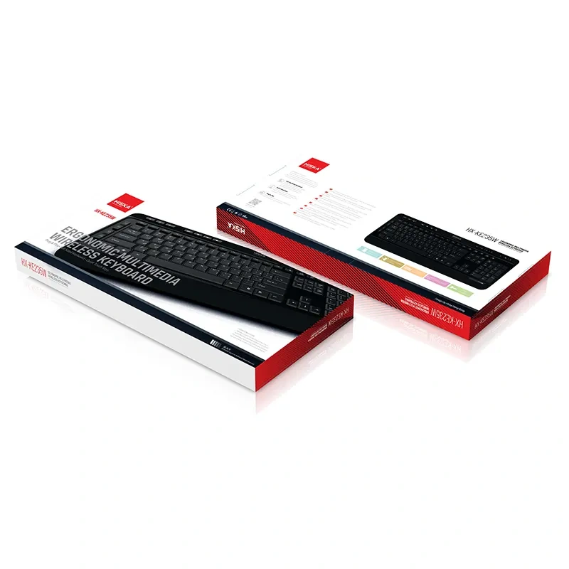 بدنه‌ی HX-KE235W ترکیبی از پلاستیک مقاوم با ظاهری مات است که لک کمتر نشان می‌دهد. کلیدها دارای فاصله‌ی مناسب‌اند تا تایپ طولانی خستگی کمتری ایجاد کند. اسکلت داخلی تقویت‌شده باعث استحکام بیشتر شده و پایه‌های تاشو در پشت کیبورد امکان تغییر زاویه قرارگیری را فراهم می‌کنند.