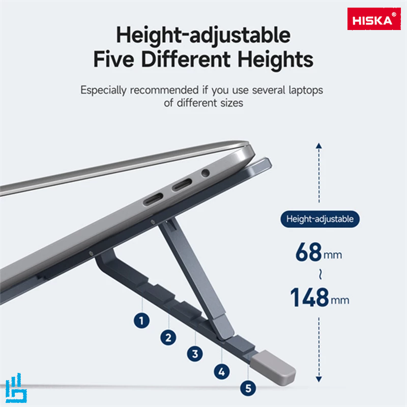 استند لپتاپ هیسکا مدل HK-2012 با داشتن پایههای قابل تنظیم و پهنا، این پایه نگهدارنده لپتاپ اطمینان میدهد که لپتاپ شما در هنگام استفاده، به طور کامل پایدار و مطمئن قرار دارد، بدون احتمال لغزش یا حرکت ناخواسته.