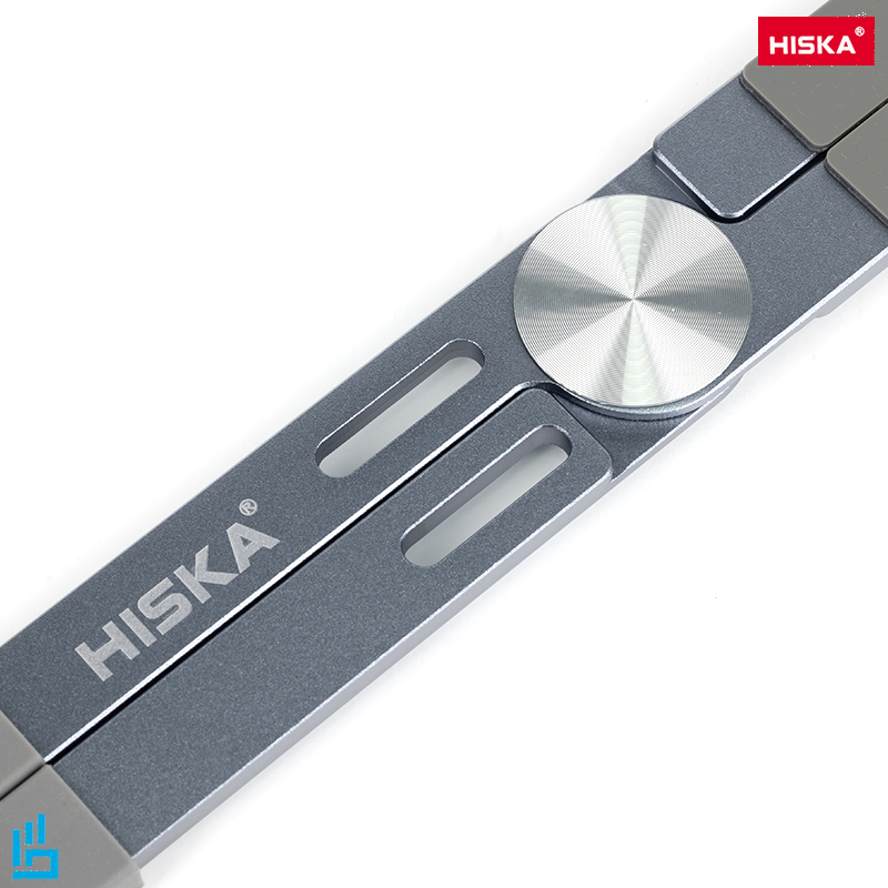 استند لپتاپ هیسکا HK-2012 از جنس آلومینیوم ساخته شده است که ضمانت میدهد که این پایه مقاوم و با دوام باشد، در حالی که همچنان وزن سبکی دارد که قابلیت حمل و نقل آسان را فراهم میکند.