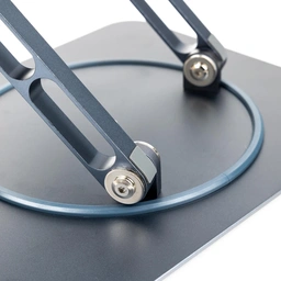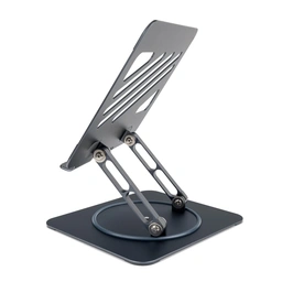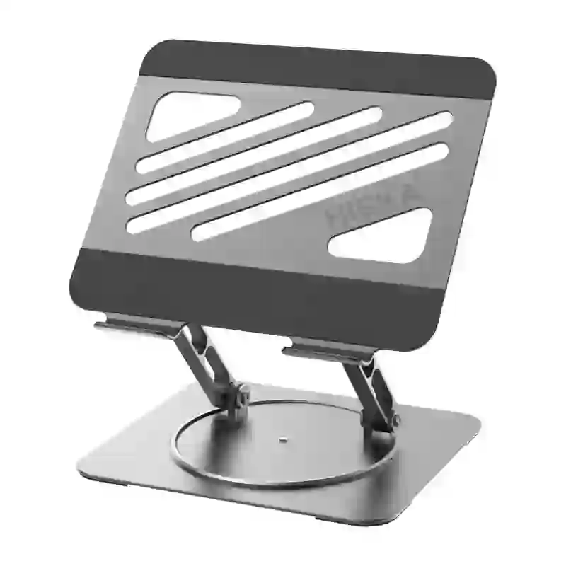 یکی از نقاط قوت HK-2020 امکان تنظیم ارتفاع و زاویه دید است. کاربر میتواند زاویه صفحه لپتاپ را متناسب با وضعیت نشستن خود تنظیم کند، به طوری که فشار کمتری به گردن و چشم وارد شود. همچنین پایه از قابلیت چرخش 360 درجه پشتیبانی میکند، یعنی میتوان لپتاپ را در جهتهای مختلف بدون جابجایی پایه چرخاند — امکانی مناسب برای نمایش محتوا به دیگران یا تغییر وضعیت کار بر حسب نیاز.